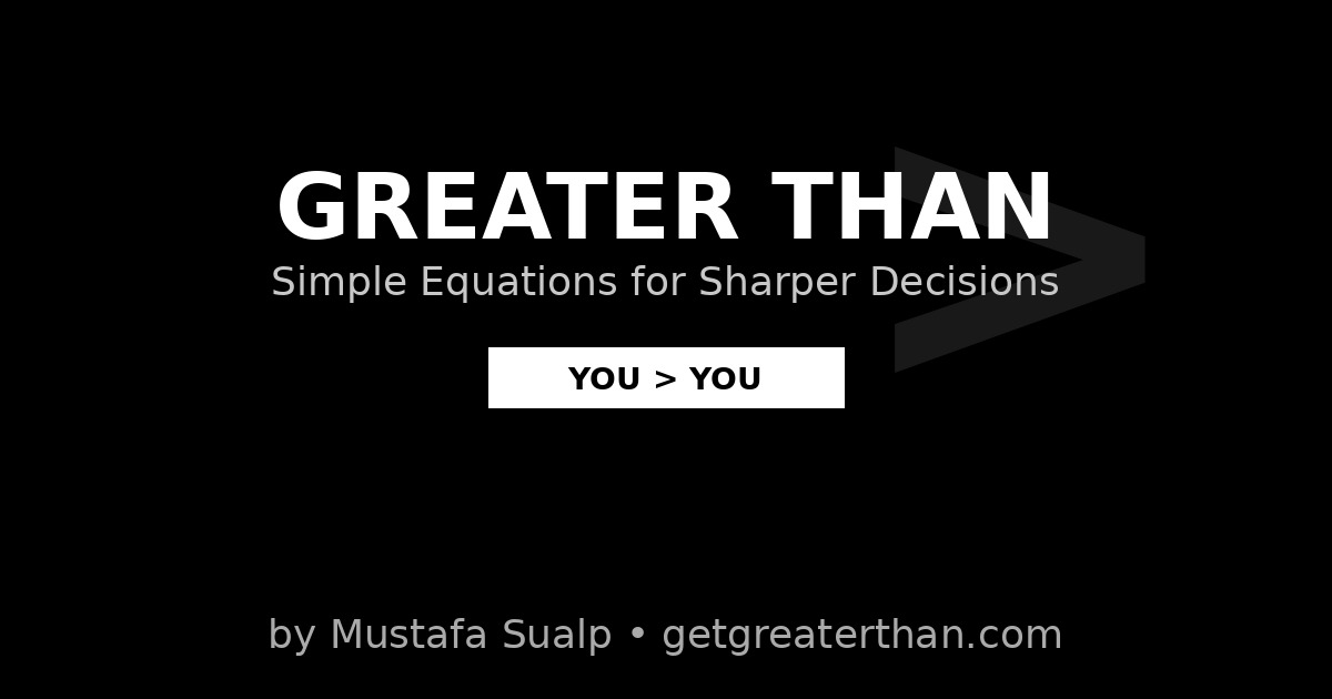 Greater Than is a design-forward book of binary mental models (X > Y) that cut noise and help you make better decisions—fast. With 30 crisp chapters, each exploring a single equation, readers gain a shared decision language that's immediately operable.